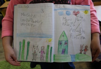 Das gemeinsame und individualisierte Schreiben im Unterricht wird um Kurse ergänzt, in denen systematisch die Grundlagen des Schreiben, Rechtschreibens und Lesens erarbeitet und geübt werden. Dafür stehen - lediglich - zwei Arbeitshefte für das ganze 1. Schuljahr (und ggf. darüber hinaus) zur Verfügung. Nur zwei Hefte, damit Zeit für echtes Schreiben und Lesen guter Lektüre bleibt. Aber doch zwei Hefte, damit die Kinder von Anfang an die Strukturen der Schrift erkennen und verstehen lernen.