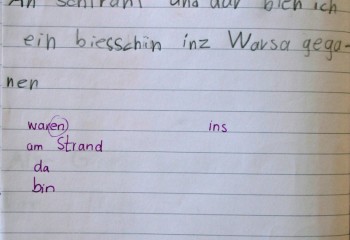 Das Sammeln und Üben von Wörtern beginnt erst, wenn ein Kind lesen kann. Vorher hätte es gar keine Chance, die Wortstrukturen zu erkennen und zu verarbeiten Es würde die Wörter kopieren, ohne dabei etwas zu lernen.