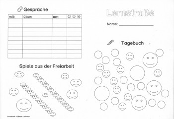 Eine andere Form der Organisation ist die "Lernstraße". Auf einem Plan für einen längeren Zeitraum (mehrere Monate) erhalten die Kinder eine Übersicht über die verschiedenen Lernbereiche und Aufgaben, die sie in einer festgelegten Zeit pro Woche bearbeiten sollen. So wie sich unterschiedliche Fahrzeuge auf Straßen unterschiedlich schnell vorwärts bewegen, so auch die Kinder auf der Lernstraße. Jeder arbeitet gemäß des eigenen Könnens. Der im Download zu findende Lernstraßenplan wurde nach den Herbstferien im 1. Schuljahr eingesetzt. Er umfasst neben den Kompetenzbereichen "Schreiben" und "Rechtschreiben" auch Aufgaben aus den Bereichen "Lesen" und "Mündliches Sprachhandeln". Für die Lernstraße standen den Kindern zwei Stunden an zwei verschiedenen Tagen der Woche zu Verfügung. Das Schreiben im Tagebuch war dabei verbindliche Aufgabe am ersten Tag, die Bearbeitung einer individuell zugewiesenen Übung aus der Rechtschreibbox Pflichtaufgabe am zweiten Tag. Die Lernstraße ist detailliert in dem Buch "Individuelle Lernwege im Schreiben und Rechtschreiben, Band I: Klassen 1 und 2, Seite 95 ff) beschrieben. Download